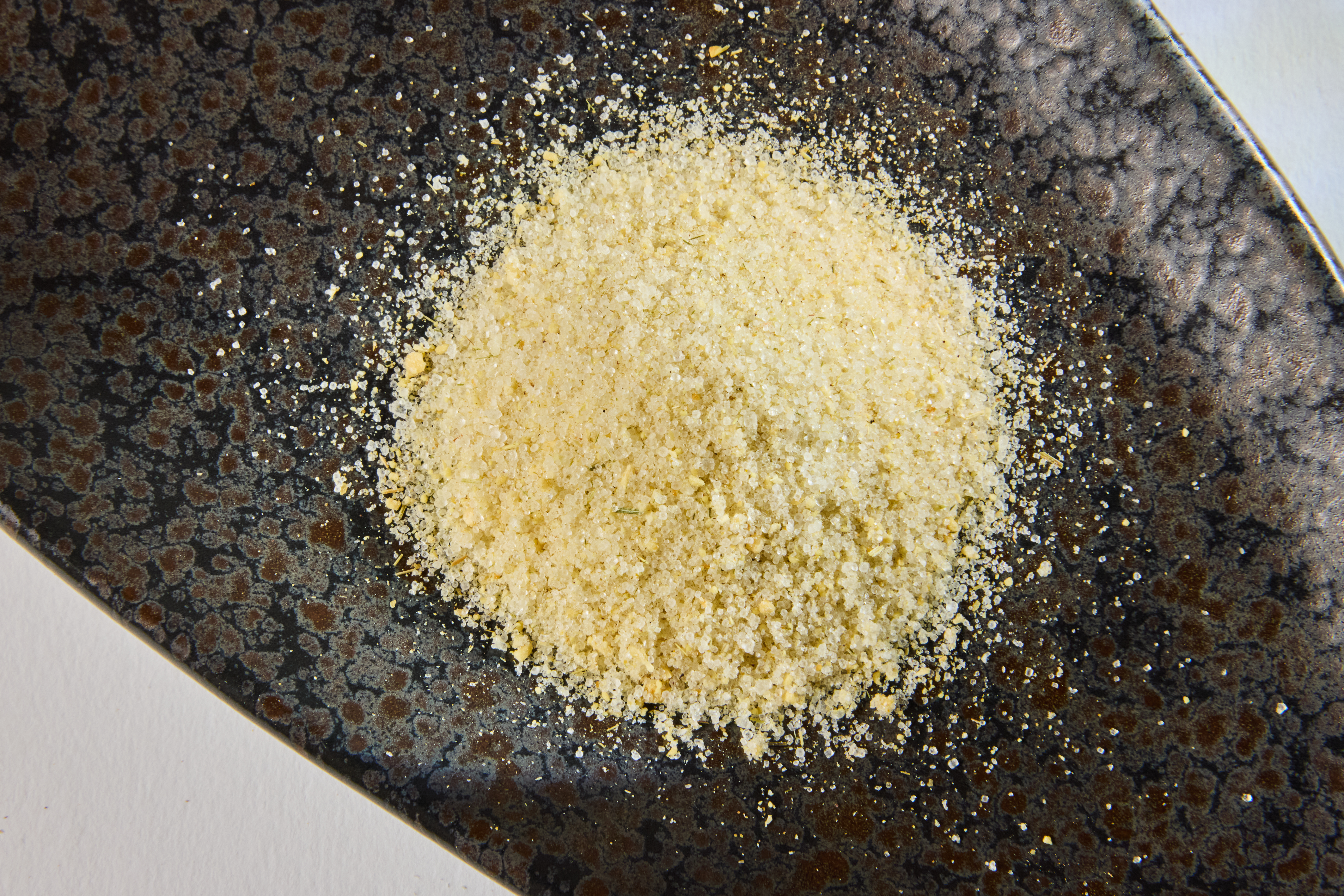 Aprikosenfruchtpulver, Erythrit E968, geriebener Hartkäse, Zitronenfruchtpulver, Salz, Pfeffer, Senfpulver, Knoblauch, Zitronengras